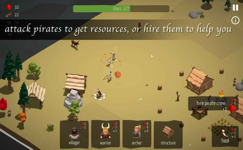 4、从林中选取野蛮人添加到您的防御,攻击海盗营地可以得到一些额外的资源。