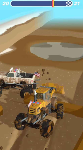 4、驾驶你的车辆在泥浆中跟其他的选手来一场赛车对决,用尽速度去碰撞它们。