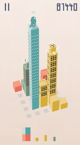 3、游戏中的楼房是有积木块组成的,并且颜色不一样。