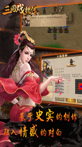跟敌人展开策略性的战斗,重新划分天下势力,三国戏魏传内购破解版是一款经典的三国策略手游,在三国戏魏传中玩家们能够通过招募收集许多的武将英雄,经典的战争画面场景玩家们能够排列自己的士兵和奖励,组合强大的阵容来与敌军进行作战!占领更多的城市与领土,游戏中你将会全面领略到一个全新的剧情故事,丰富的英雄人物搭配,独特的阵容组合体系,加上各种惊艳的战争体系,带你体验一个非同一般三国战场。