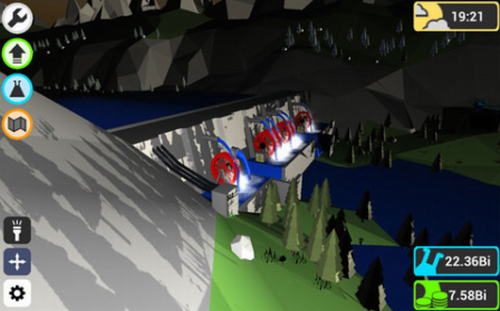 3、真实的模拟玩法,从最初的各种设备开始搭建,最终利用风和水流等等可循环的自然能源转换为电能。