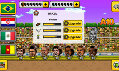 游戏在轻松搞笑的氛围中进行,各种搞笑效果由你发掘。傀儡足球2014破解版是一款是一款带有休闲娱乐色彩的足球游戏。小时候最喜欢在4399上来几把的傀儡足球系列游戏,什么q版大头梅西C罗,世界球星全都有。头顶脚踢,使用道具,在世界杯横扫对手。游戏易上手,利用几个简单的虚拟按键,即可控制球员左右移动、跳跃和射门,选择你最钟爱的国家队与球星,跳着热情的桑巴舞蹈一起加入游戏吧!