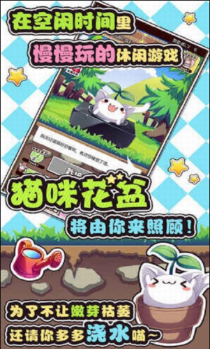 猫咪花盆破解版是以卡通画面和可爱的猫咪形象来打造的宠物养成手游,游戏创新的将猫咪与花盆结合在一起,您只需要不断地给猫咪花盆浇水,猫咪花盆即可开出可爱的猫咪出来,多种栽培方式任您挑选,猫咪种类多达四十多种,不断给予猫咪花盆营养,收集它开出的花吧!游戏在玩法模式上面非常轻松简单,培养你的猫咪花盆,来养殖各种不同的可爱猫咪,还有趣味互动玩法可以和猫咪们进行亲密互动,玩起来十分有趣。