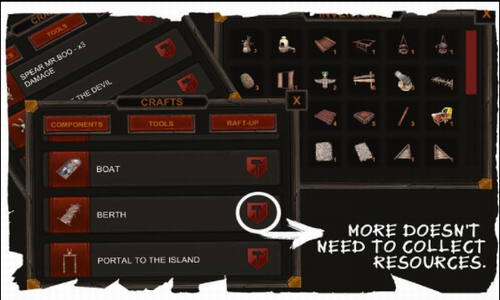 3、创建自己的海洋游牧民族故事在你生命的那一天过后,一切都改变了。在陆地上轻松安全的日子已经一去不复返了。是时候重新开始了。建造你的木筏 - 建立自己的家园,并创建自己的冒险故事!