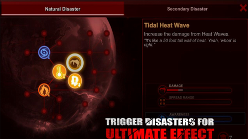 2、毁灭世界的形式有很多种,核弹战争、外星人入侵或陨石撞击等等都能致使世界毁灭。而开发者唯独选择了以人类生存环境的恶化作为主题,就是想提醒世人,生存环境的问题已刻不容缓,如果持续无节制的破环环境,人类很快就会走向灭亡。尽管游戏是让人感到轻松和愉快的,但其表达的思想却是严肃的。