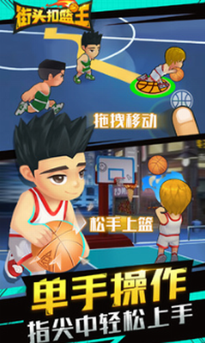 这是一款非常有趣的多人竞技游戏,快来挑战吧!街头扣篮王官方版是一款画风精美玩法独特的篮球类竞技游戏,玩家可以找到最为快乐的篮球体验,在这款游戏中击败对手。游戏中你可以获得许多的角色,不同的角色侧重点也不一样,有的擅长,运球、有的擅长三分,还有的就是我们的街头扣篮王,他们一个个风格迥异,让人看了都十分喜爱。通过各种技术和技巧完成各种挑战。游戏玩法轻松易上手,简单的操作给玩家带来丰富的游戏表现力,轻松愉快的游戏氛围带给玩家超棒的体验。喜欢篮球竞技类游戏的玩家就快来下载吧。