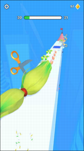 1、躲避前方变换不定的剪刀完成躲避的操作,这样也可以在终点的过程中。