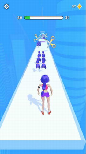 1、脑洞很大的一款跑酷求生游戏,玩家将会操控一个长发美女,在剪头发快跑游戏的赛道上奔跑。