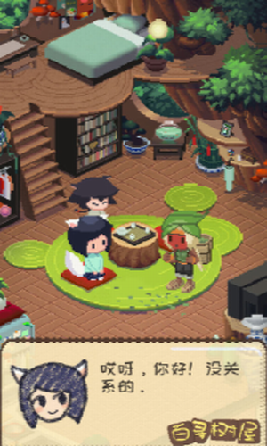 1、和店里的旅客们进行多种不同的互动体验,一起下棋泡茶喝。