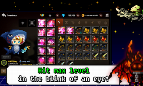 从前有一个倒霉的弱鸡勇者,才看到BOSS的一角就被BOSS一手捏成了渣渣;史莱姆猎人中文版这是一款像素风格的角色扮演手游。经典的地牢冒险玩法,在游戏中,玩家将扮演一名勇敢的猎人,消灭不断出现的BOSS,以及幕后黑手大魔王。游戏不仅有精彩的故事剧情,而且还有趣味的角色养成玩法,可玩性很高。你现在是一名史莱姆猎人,你就是专门为了消灭史莱姆而生的!通过狩猎史莱姆获得的金币,来购买装备增强自身能力。