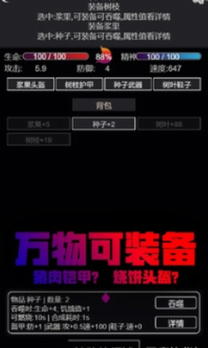 3.游戏中挑战造出神器,也许用瓜果蔬菜也有意外收获,从上到下自由装备。