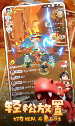 1.游戏实现了和朋友组队一起挂机的体验,可以拉现实中的朋友一起组队,当然也可以在游戏中认识其他新的朋友一起组团PK