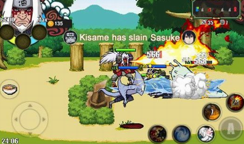 2、控制你的忍者英雄进入火影动漫世界,释放技能砍杀一切。