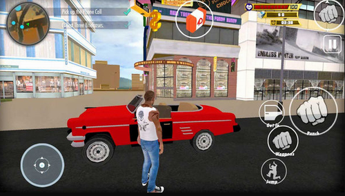 1、可以当做是一款手机上的GTA游戏来玩法,因为在游戏的设计上就是照搬的。