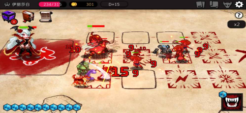 1.热血的战斗冒险玩法,选择不同的角色进入地牢中进行冒险,多样卡牌的抽取开始战斗