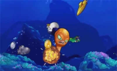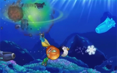 2.每关一开始的过场动画相当有趣,可以看到主角本来在深海的洞穴滑手机或玩平板,然后又被人类激怒了而跑出来大闹一番。