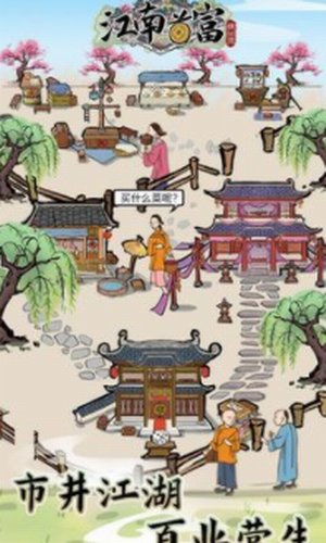 1、初入江南,你只有一个小小的糖人摊,随着你财力的积厚,蛐蛐摊、豆腐摊、风车摊也随之开启;