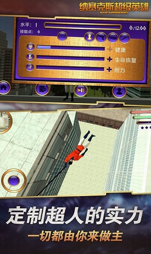 1、尽致细腻的开放城市建模,在高楼林立的大都市之中利用你的超能力自由穿梭。