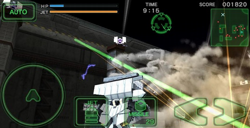 1、3d的机甲战斗画面流畅,武器射击的弹道,战场上的硝烟。