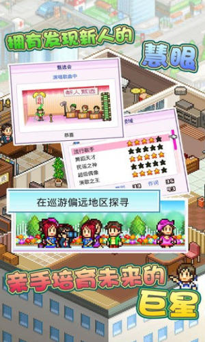 百万乐曲物语无限金币版是一款像素风格的模拟经营类游戏。玩家需要去招募人才为你工作,挖掘有潜力的音乐新人,培养他们的能力,举办演唱会提升知名度,让你的公司也跟着出名,玩家需要制定一个完美的方案,小伙伴们赶快来打造属于自己的明星吧。游戏内容丰富多样,玩法简单易上手,玩家需要多多出门行走、运用媒体广告等,来挖掘各种各样有着与众不同个性的新手,休闲有趣的玩法,带给你不一样的游戏体验,感兴趣的朋友就快来下载吧。