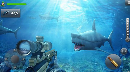 3、成为一个熟练的鲨鱼猎人,通过射击,这些肉饥饿的鲨鱼。