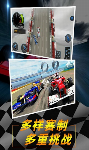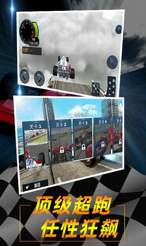 1、多种超级方程式赛车,易于控制,引擎和其他升级。