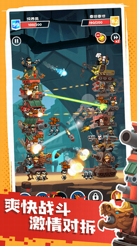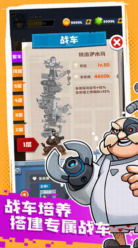 2、战车搭建,自由组合,打造个性多层战车,自由上阵组合多种英雄。