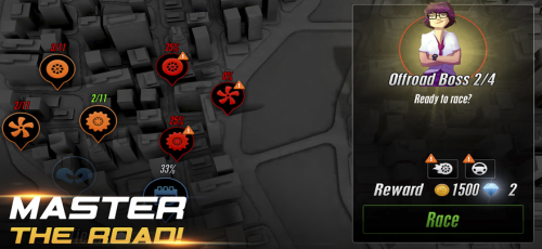 1.穿过大街小巷,使用各种各样的赛车技术,获得最终的胜利