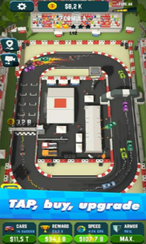 2.通过一场场的赛车比赛慢慢获得更多收益,然后慢慢扩大自己赛场的规模
