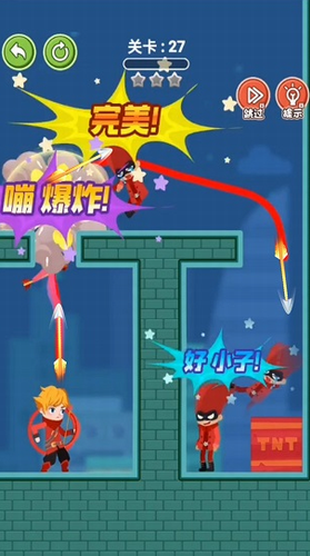 疯狂画箭无限道具版是一款玩起来很有趣的趣味休闲闯关游戏,可爱的游戏画面,轻松简单的手指点击操作玩法,整个游戏的内容还是很丰富的,而且独特的操作点击玩法也很有趣,玩家要绘画出各种箭,游戏关卡比较多,可以自由的进行绘画射击路线,玩家要控制角度进行闯关,要使手中的箭在飞跃出去的时候是以什么样的途径飞出去的,不然就击倒不了敌人了。游戏关卡众多,玩家要多多闯关,获得道具,争取在通关完成的时候获得三星喔。