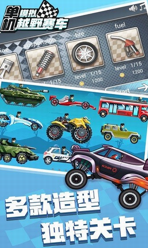 单机模拟越野赛车破解版这是一款玩法欢乐的赛车街机闯关手游。玩家需要驾驶越野车,穿越不同的赛道地形,注意收集燃油和金币,到达终点即可通关。只要玩家学会了更多的技巧才能证明自己更多的驾驶能力,并让自己在挑战中获得更多的奖励,这样才能在游戏中完成更多的任务。 而且还有非常多的游戏体验。帮助玩家们获得更加丰富的内容。如果你想了解更多内容,欢迎下载体验!